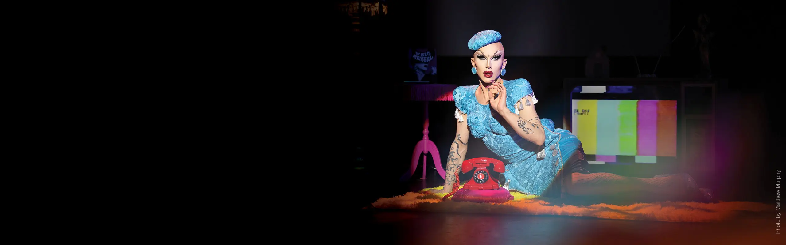Known for her emotional, thoughtful, and crowd-shaking reveals, The Big Reveal Live Show takes things to a whole new level as Velour goes further than she ever has before. Grounded in classic theater, the show takes on many forms over the course of 90 minutes: high-concept lip sync performances, artful oration, childhood film footage, video art, and more. The Big Reveal Live Show shows this superstar at her most playful and hilarious. From the show’s whip smart comedic script and side-splitting gags, she uses comedy as a way to disarm audiences and hit them with emotional truths. The show’s drag performances are accompanied by a diverse soundtrack ranging from Stevie Wonder to Britney Spears, Stephen Sondheim to Deep Purple.