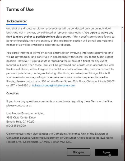 You will be asked to accept Ticketmaster’s Terms of Use to continue.