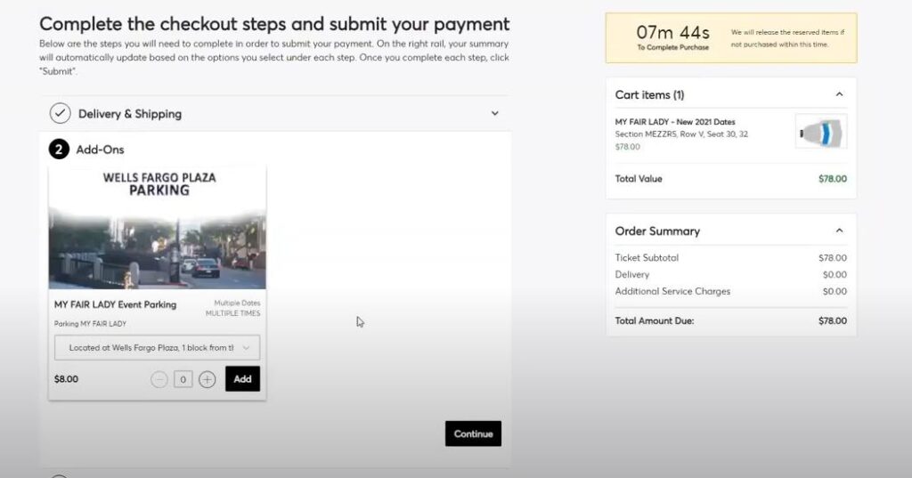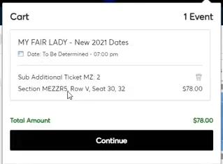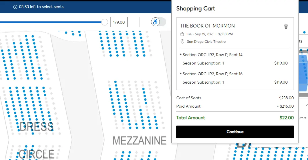 STEP 7: Review the seats you have chosen in your cart, then click Continue.
