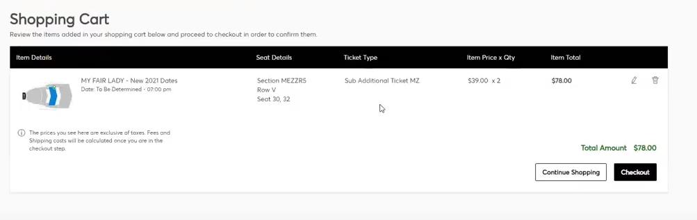 STEP 7: Review your tickets in your Shopping Cart. If you need to buy more tickets, click on Continue Shopping, otherwise click Checkout.