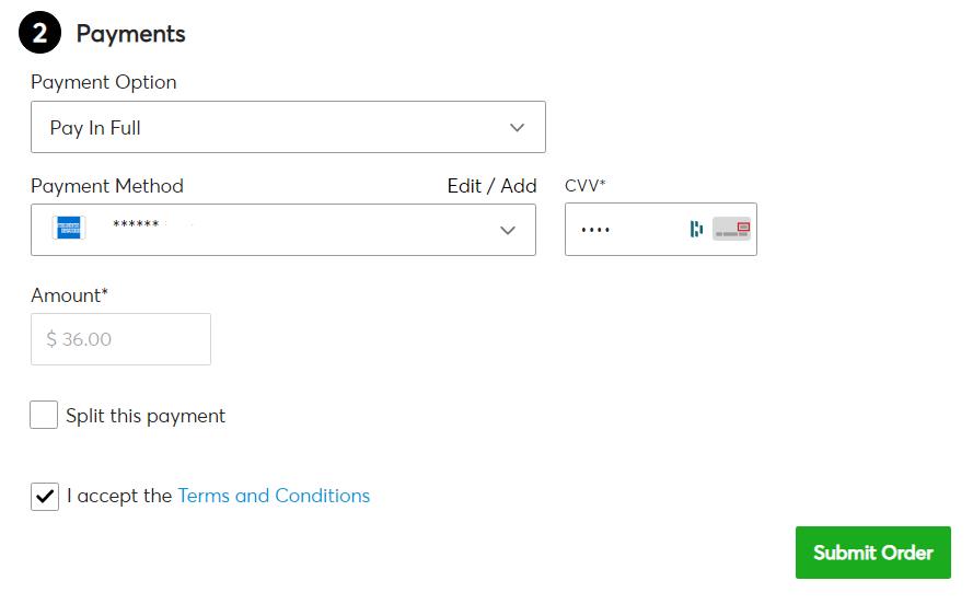 STEP 10: Enter your Method of Payment (and use any Account Credit, if available), review your order, and click Submit Your Order.