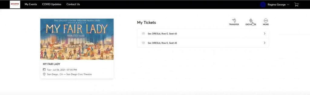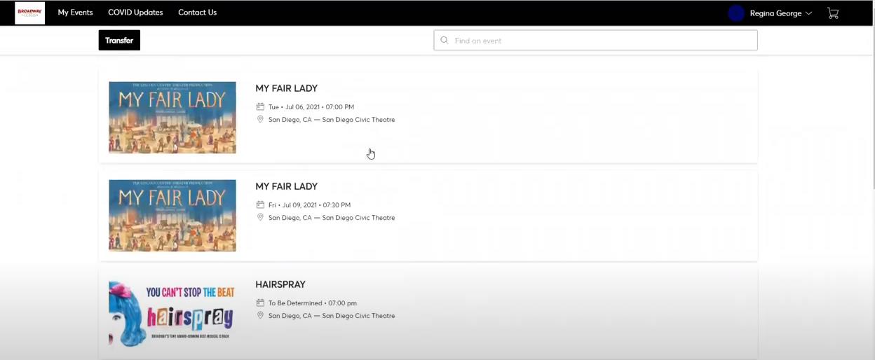 Mobile tickets have been activated and the transfer option is available in your Broadway San Diego account.
