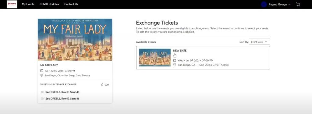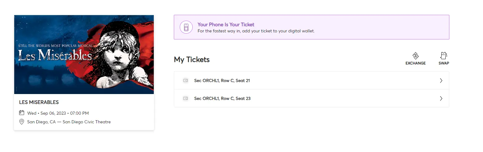 Season Ticket Holders have the most flexibility. If you can’t make a performance date, you can EXCHANGE your tickets from one date to another, SWAP from one show to another (ONE time), transfer your tickets to friends or family, or resell your tickets online through Ticketmaster.
