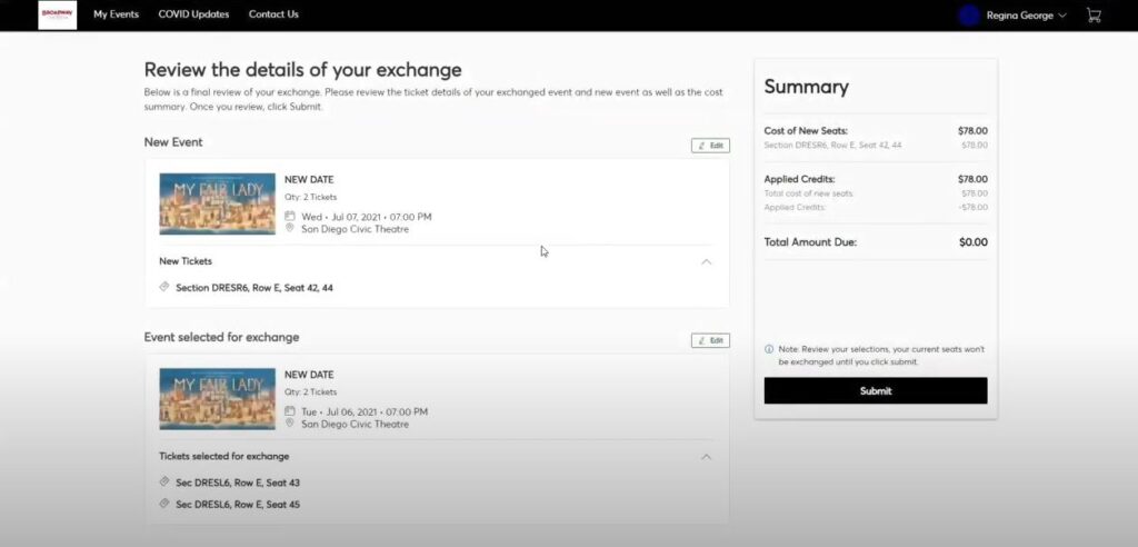 Finalize the exchange and payment (if applicable) by clicking Submit Order.