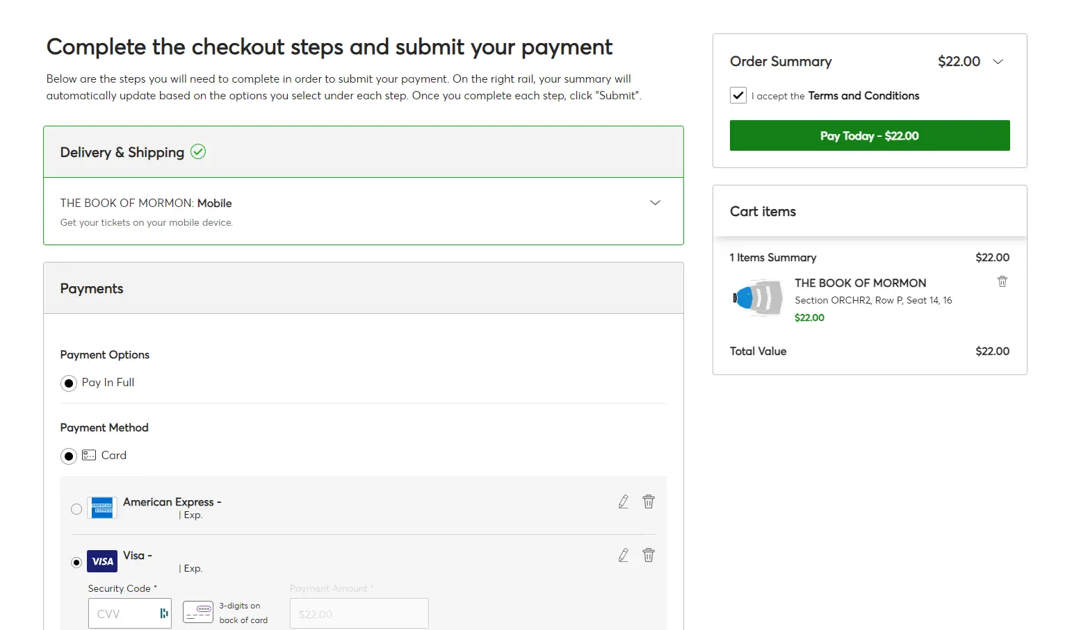 STEP 6: Enter your Method of Payment, review your order, and Submit your order.